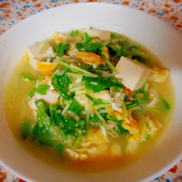 炒めた卵と水菜の玄米スープご飯 レシピ 作り方 By Mococo05 楽天レシピ