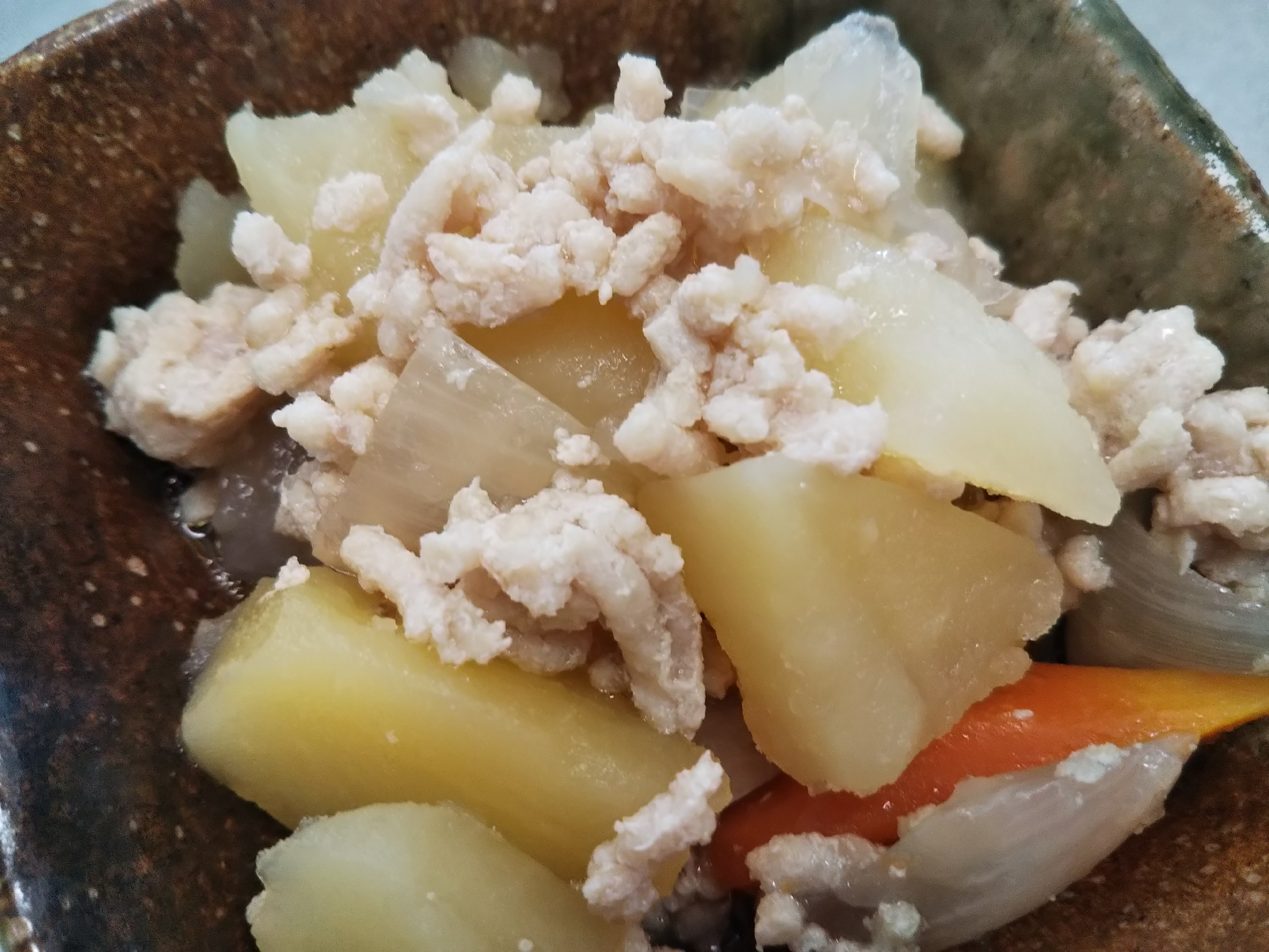 レンジ めんつゆで簡単 鶏ミンチであっさり肉じゃが レシピ 作り方 By Mikabonchan 楽天レシピ