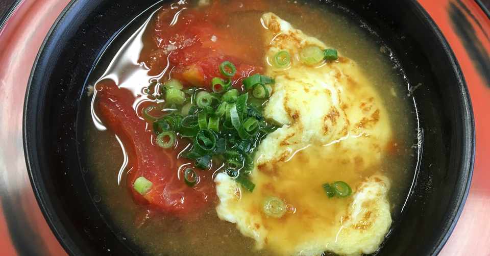 お料理 揚げ卵とトマトのお味噌汁 調理時間 10分 たけうちたろう Note