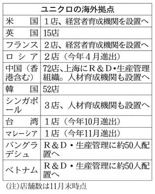 ユニクロ全店長 海外勤務 日中越バングラ 4極 で開発 生産 日本経済新聞