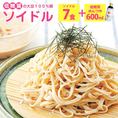 低糖質麺 糖質制限 麺 大豆麺 ソイドルつゆセット 7食分 低糖質めんつゆ600ml 大豆 ソイヌードル 食 糖質オフ ヘルシー 健康 ダイエット ローカーボ ヌードル 低カロリー 低gi 低炭水化物 マルサン 糖質制限 低糖質 ソイドルでイイことプラス