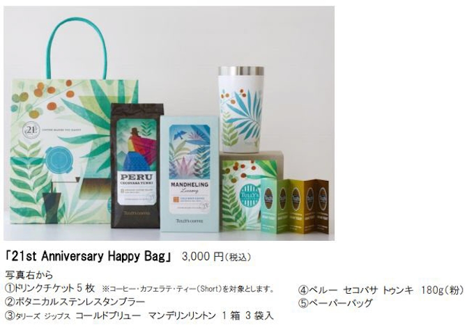 タリーズコーヒー 限定コーヒー豆やグッズなどが入った 21st Anniversary Happy Bag を発売 日本経済新聞