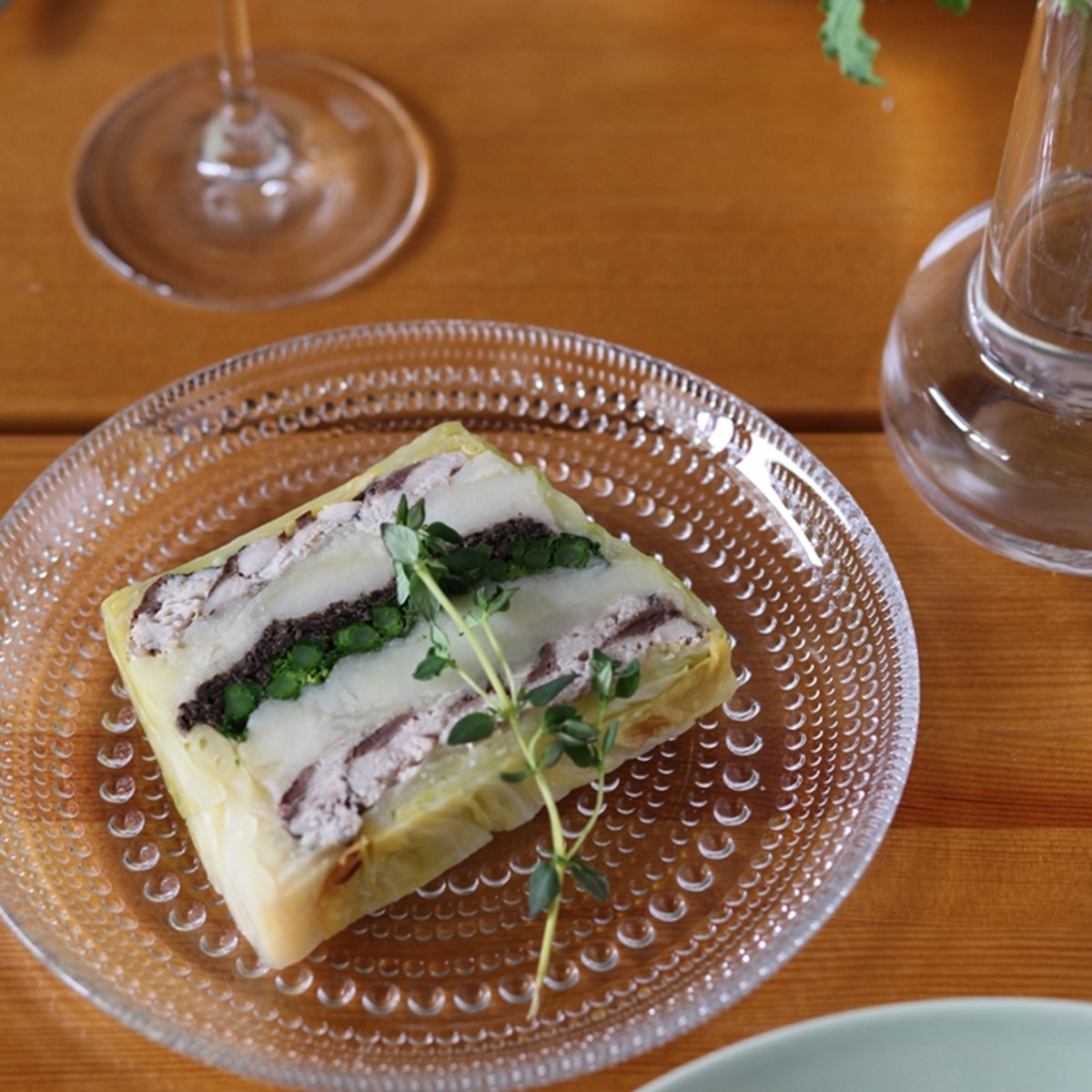 穴子とじゃがいものテリーヌオレンジ生姜ソース じゃがいも 食べ物のアイデア テリーヌ