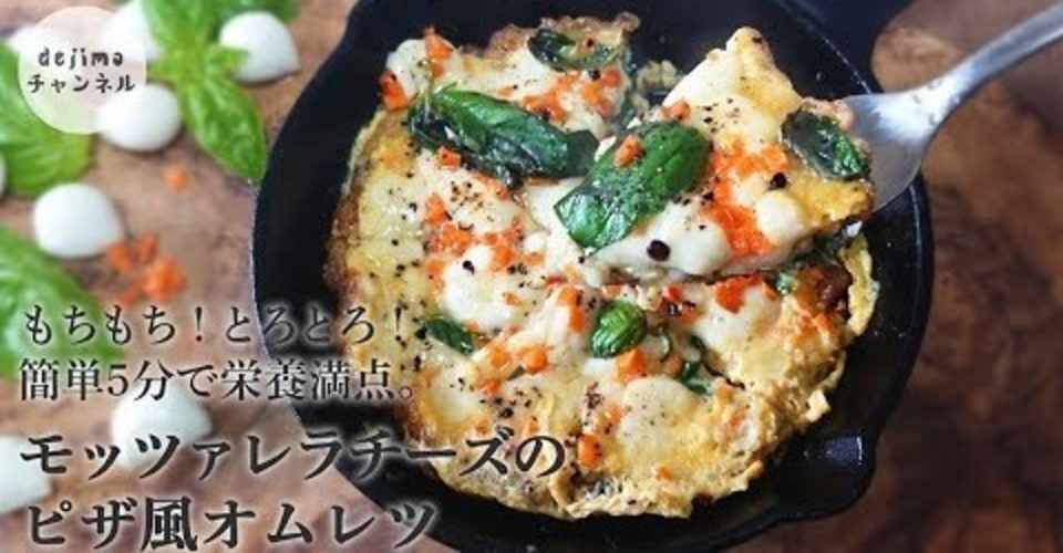 モッツァレラチーズのピザ風オムレツの作り方 トロトロ もちもち の食感 オーブン不要 スキレットだけで簡単 5分で栄養満点 Dejima Cooking Note