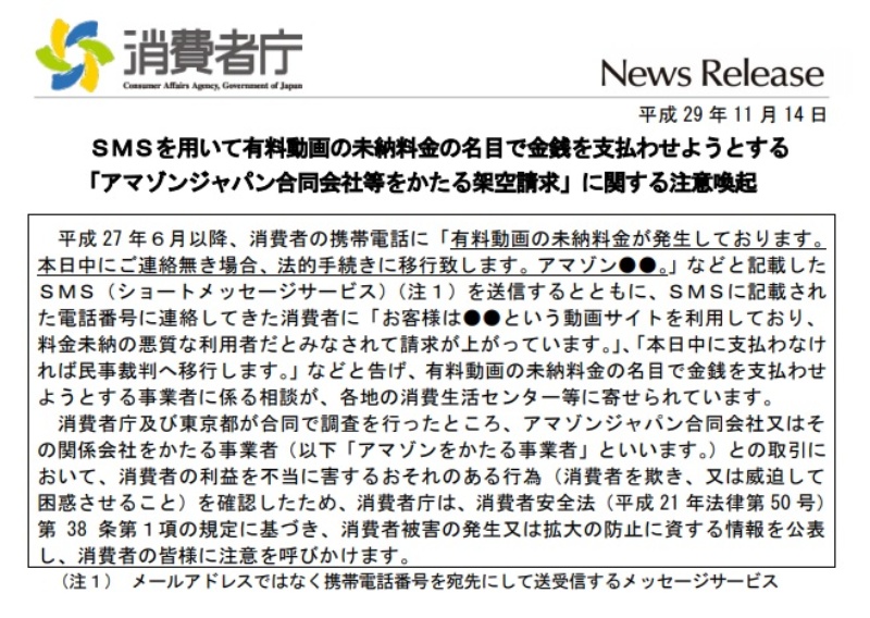 日本通信をかたる架空請求のsmsが出回る 消費者庁が注意喚起 ケータイ Watch