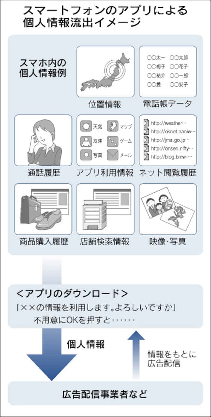 相次ぐスマホ個人情報流出 知らぬ間に位置情報も 日本経済新聞