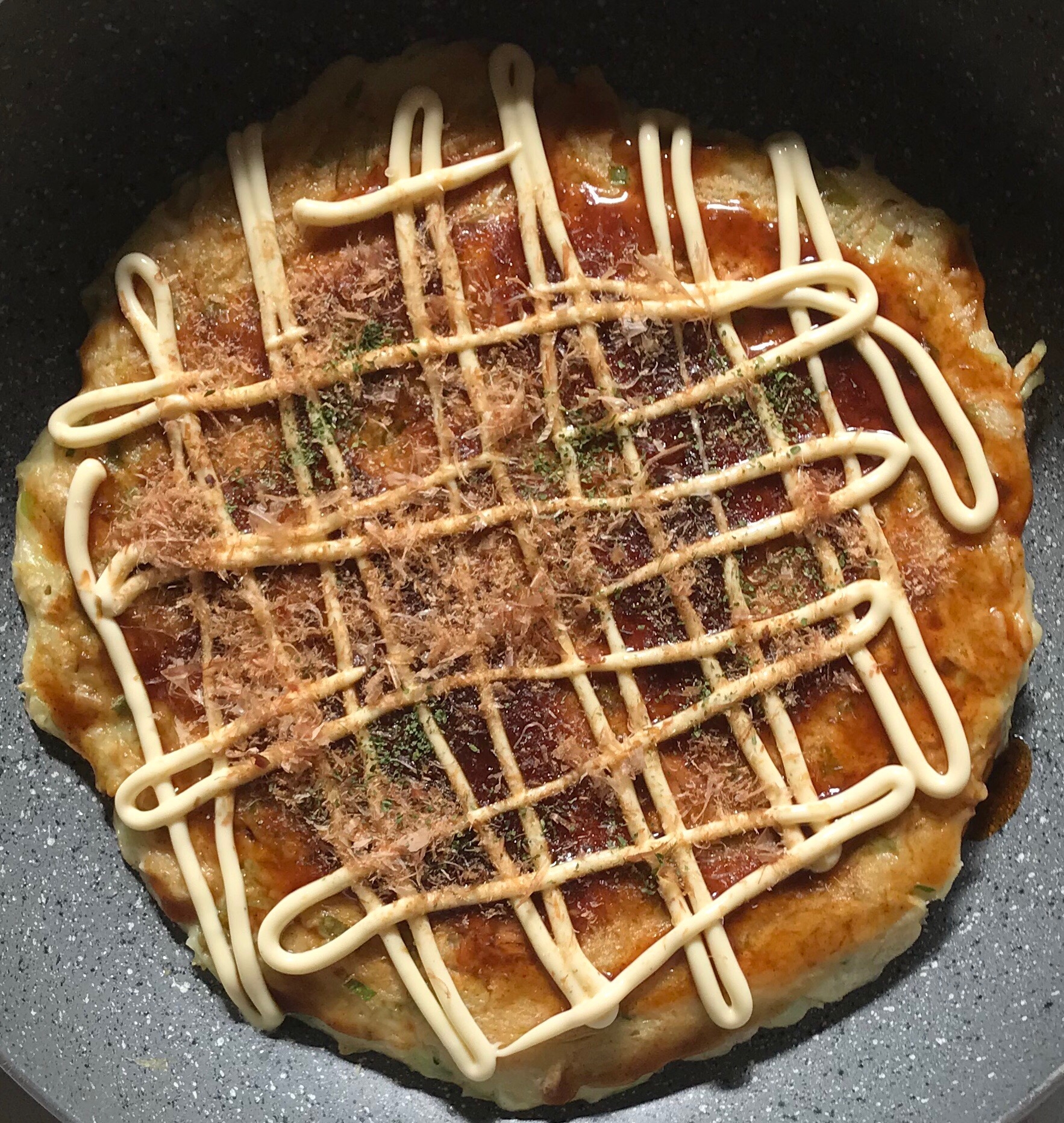 はづき葉月 いつもはピザのように切っているのですが 大きすぎるので 関西ではお好み焼きを格子状に切る を思い出し 初めて我が家にこのお好み焼きの切り方が上陸しました さあ お食べ
