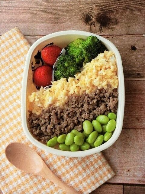 三色丼レシピ 人気の鶏そぼろと枝豆と卵使った簡単な夫弁当 かおりごと まったり主婦の自分磨きと日日アロマ ヒロブロ