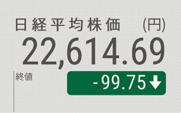 日経平均4日ぶり反落 99円安の2万2614円 ナウティスニュース