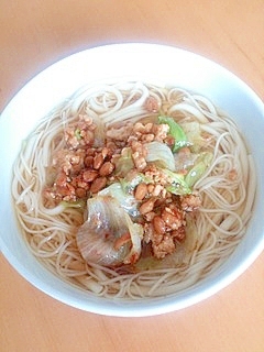 うどん 納豆と鶏ひき肉とレタスの炒めもののせ レシピ 作り方 By Maggieまぎー 楽天レシピ