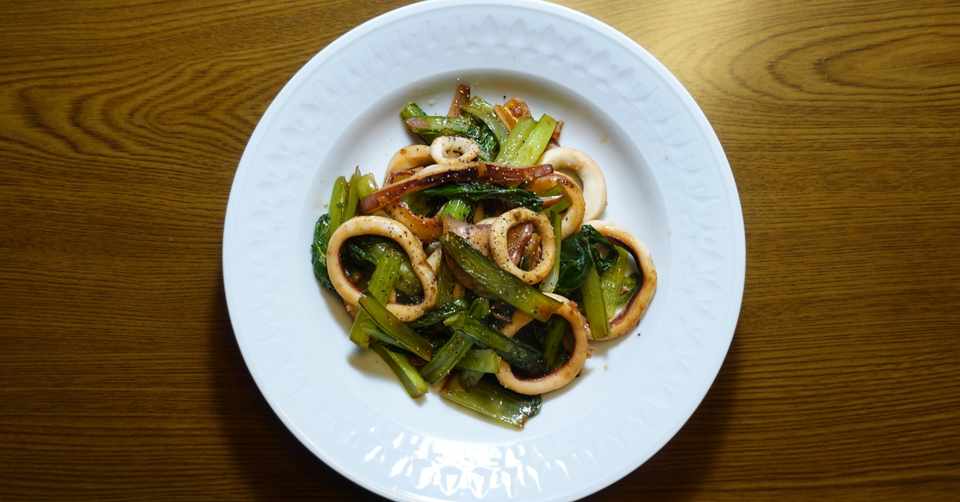 いかと小松菜のにんにく醤油炒め Koji Harada Note
