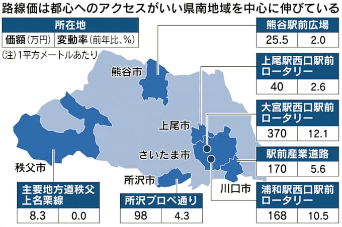 19年の埼玉県内最高路線価 下落地点4年ぶりゼロ 日本経済新聞