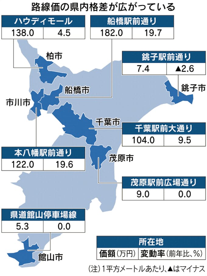 千葉県内路線価1 上昇 北西部の値上がり加速 日本経済新聞