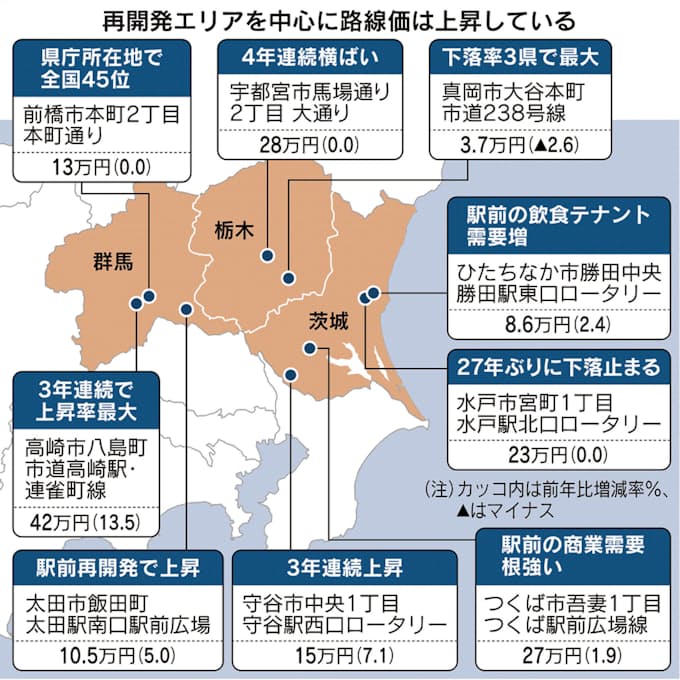 北関東路線価 再開発進む高崎が2桁の上昇率 日本経済新聞