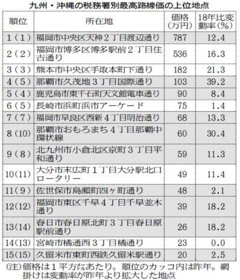 大分27年ぶり上昇 九州7県路線価 宮崎下げ止まり 日本経済新聞