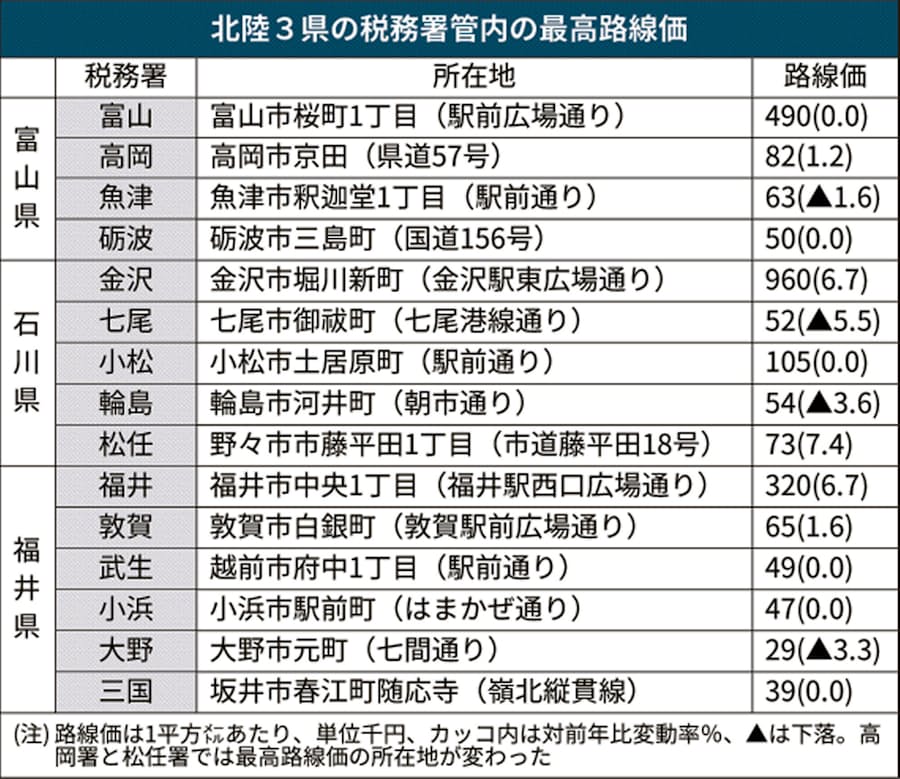 北陸3県の路線価 福井と富山は下落 石川は上昇 日本経済新聞