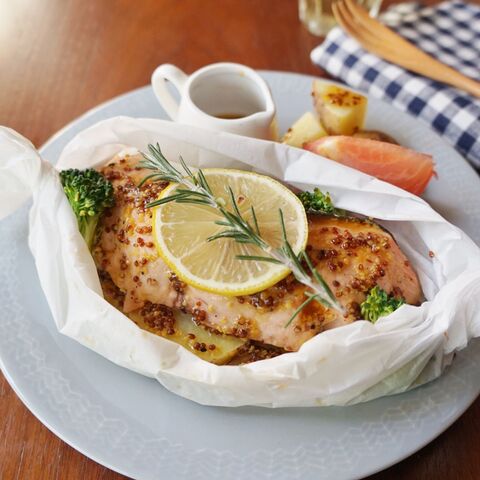 電子レンジで簡単 秋鮭のハニーマスタード包み焼き 暮らしニスタ