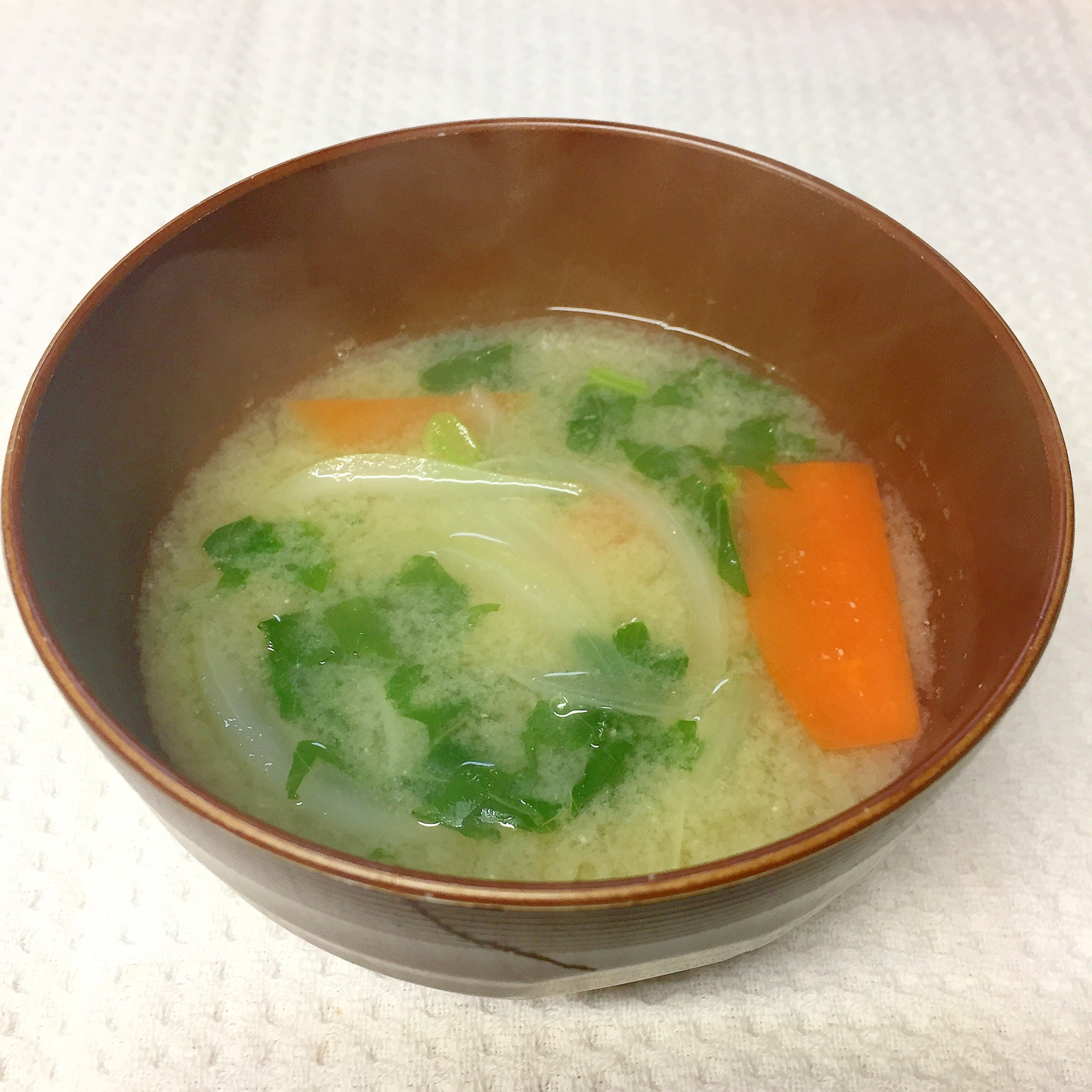 人参 玉ねぎ 大根の葉の お味噌汁 レシピ 作り方 By まかろん 楽天レシピ