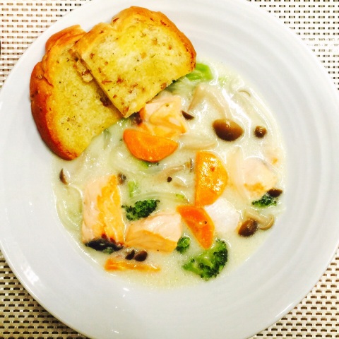 鮭のクリームシチュー ガーリックトーストと共に 暮らしニスタ