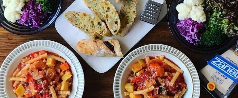 ペスカトーレとマッシュかぼちゃのサラダ じゃがいも入りミネストローネのスープパスタ フードライター浅野陽子の美食の便利帖