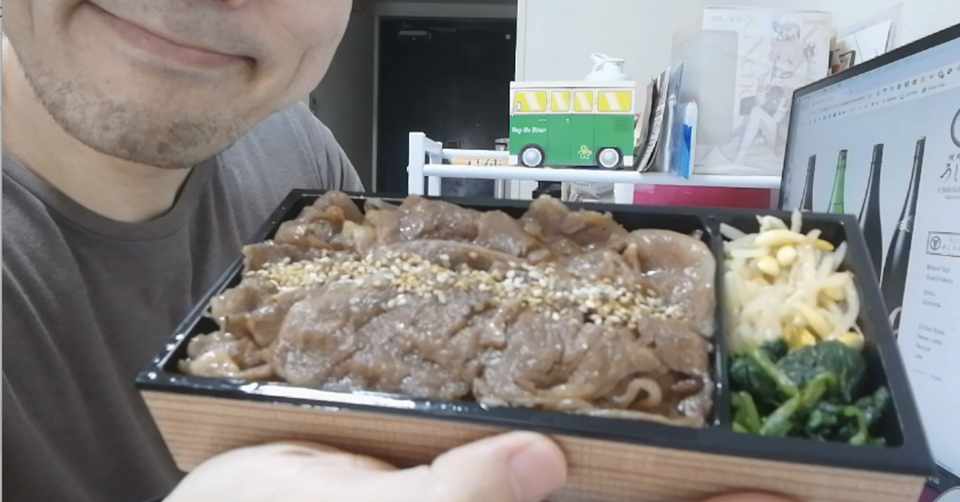 横顔 135 恵比寿の焼肉店うしごろ貫の特選a5黒毛和牛焼肉弁当をmenuのデリバリーで 食べる人の横顔 Note
