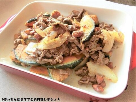 かぼちゃと牛肉のガリバタめんつゆ炒め 暮らしニスタ