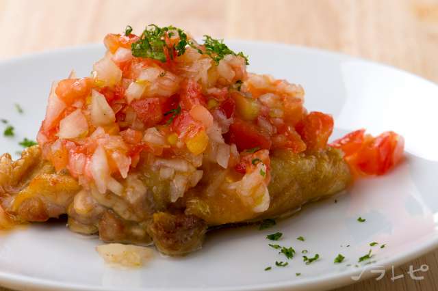 サルサ風で食欲upトマトソース添えチキンソテーのレシピ ソラレピ