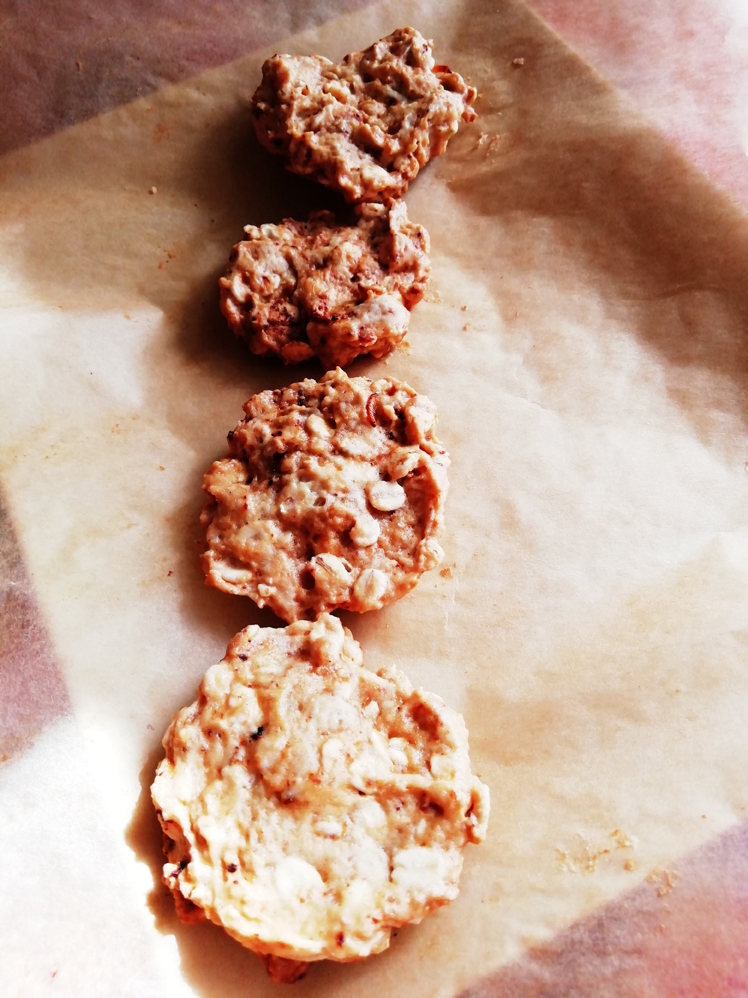 超ヘルシー 簡単オートミールクッキー 卵 乳製品不使用のヴィーガンクッキー ヘルシーなアメリカンなクッキーです 材料 4 押し麦 グルテンフリー またはオーツ麦 70g 全粒小麦 小麦粉でも可 60g シナモンパウダー 大さじ1 くるみ 他のナッツ