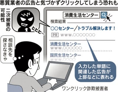 ワンクリック詐欺 解決装い 相談で二次被害 ご用心 広告を悪用 依頼料請求 日本経済新聞